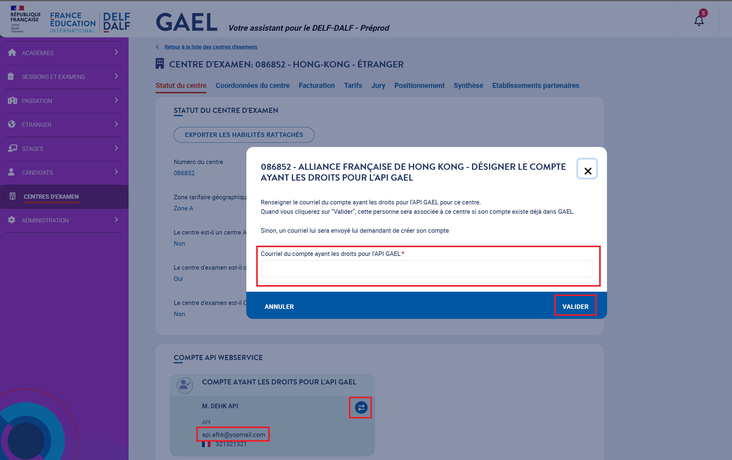This section is designed to assist administrators in connecting Oncord with the GAEL platform. GAEL is developed by France Éducation International for managing DELF/DALF exam registrations.
